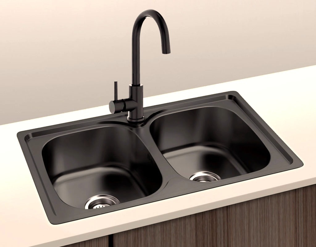 Fregadero Acero Negro Pavonado Serie Dublín 80x44 cm Sobre Encimera