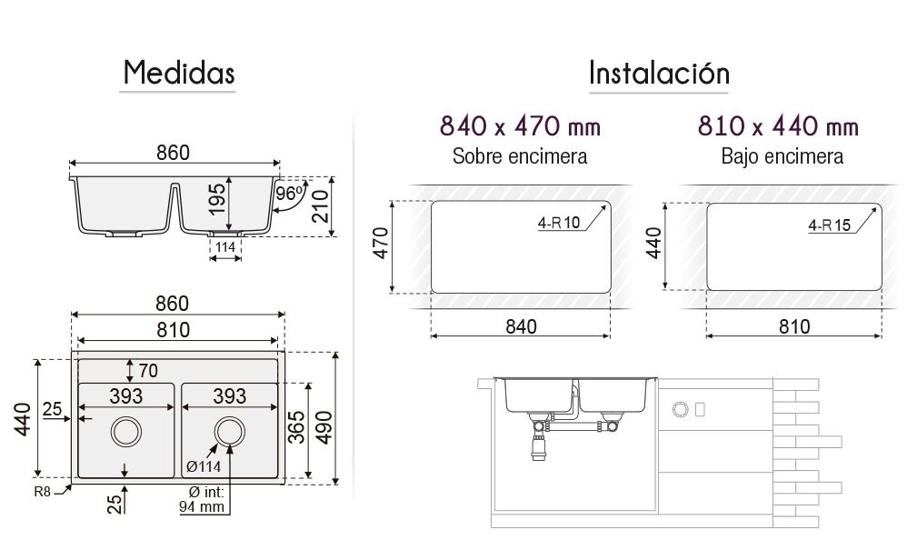 Fregadero de Granito Bajo o Sobre Encimera Mod. MARTE