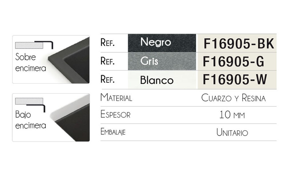 Su diseño bajo encimera crea una integración perfecta con la encimera, aportando una apariencia limpia y sofisticada. Además, están disponibles en tres tonos exclusivos —Gris, Negro y Blanco— para que elijas el que mejor combine con tu estilo de cocina.