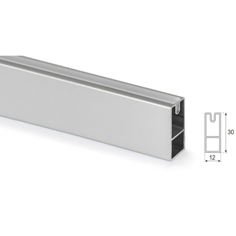 Barra rectangular de acabado aluminio plata mate de 1,95 m de longitud, con sección de 30 x 12 mm, ideal para colgar ropa en armarios y vestidores. Resistente, ligera y fácil de instalar.