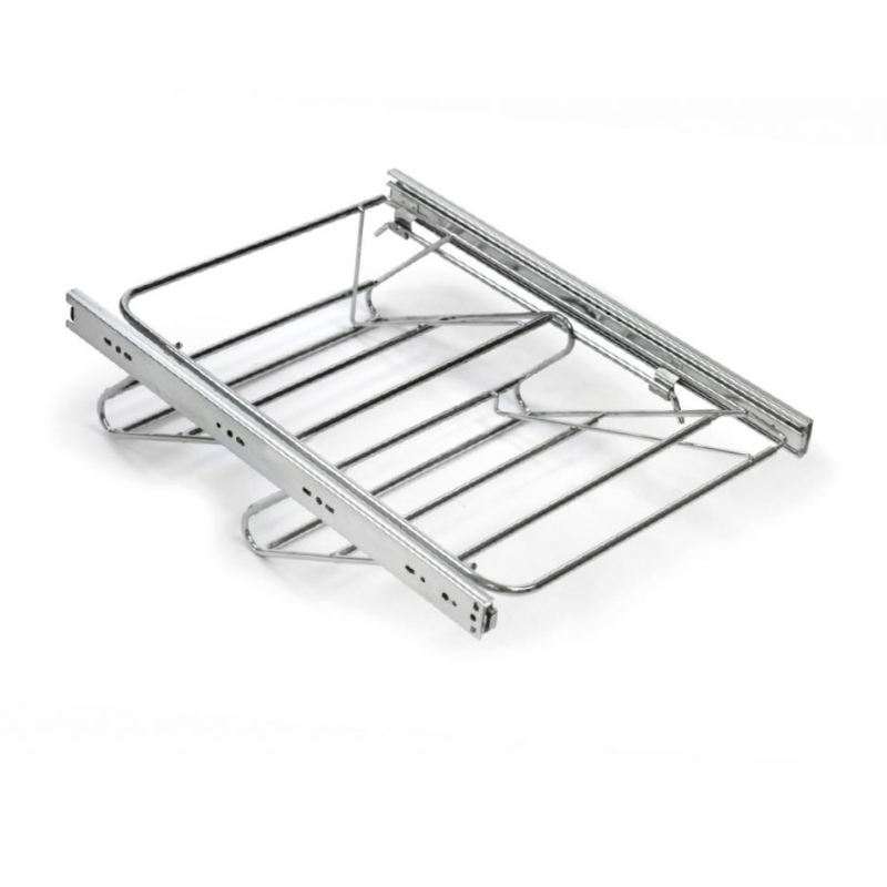 Zapatero de alambre extensible para armario, diseñado para optimizar el espacio interior y mantener el calzado organizado y fácilmente accesible. Su sistema extensible permite adaptarlo al ancho del módulo, ofreciendo una instalación versátil para diferentes medidas de mueble.