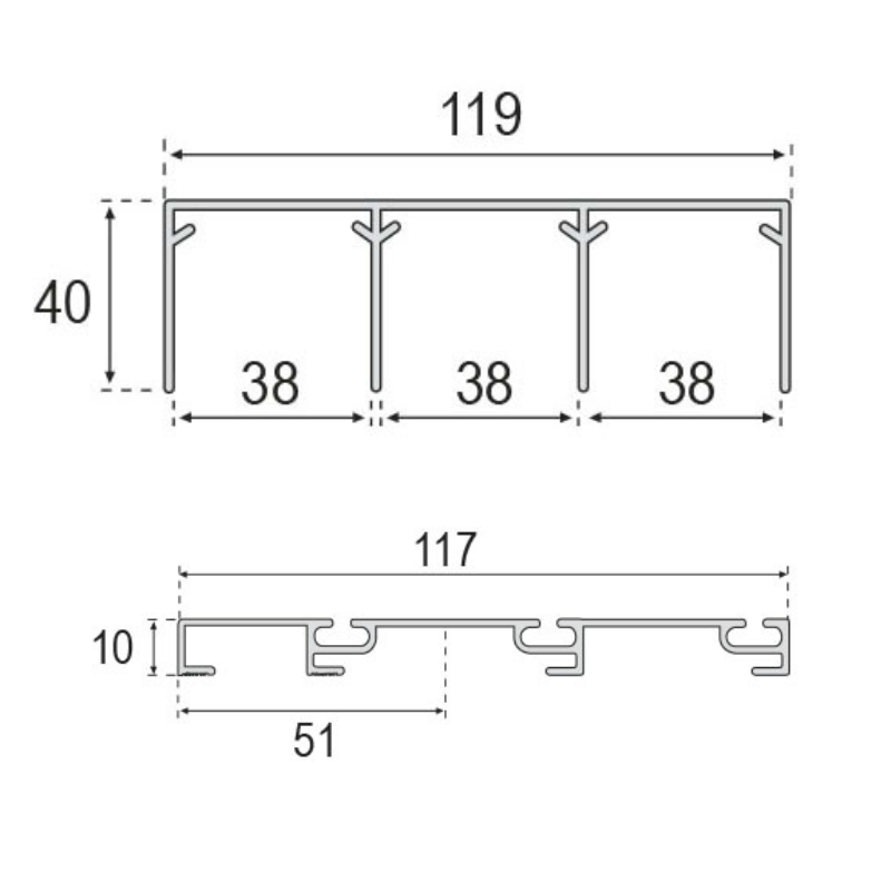 Composición: Guía superior y Guía inferior, listas para cortar a la medida de tu armario e instalar.