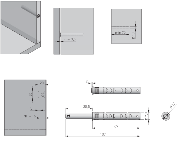 Amortiguador Push de Superficie con Goma